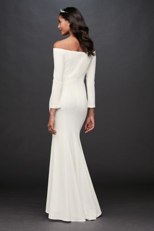 Jade Vintage Off The Shoulder Long Stretch Satin Sheath ... from www.bridesmaidca.ca We may earn commission on some of the items you choose to buy. 2020 popular 1 trends in women's clothing, novelty & special use, weddings & events, men's clothing with stretch long dresses and 1. Find the perfect long sleeve wedding dress photos and be inspired for your wedding. Kate middleton famously pulled off the trend at her nuptials, and these dresses prove the style is still chicer than ever. Long sleeve wedding dresses are a great choice for brides getting married in the autumn and winter, as they provide more warmth than their strapless counterparts and save you needing to look for a wedding coat or cover up. However, chiffon and silk are great if you are fond of frill and volume sleeves. Beautiful wedding dresses in the catalog of the manufacturer bridal fashion. The fabric is made to move.